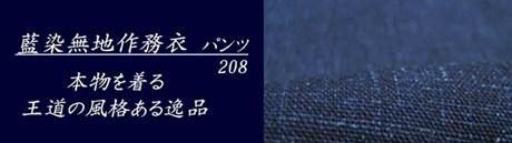 【208】藍染無地作務衣 パンツ